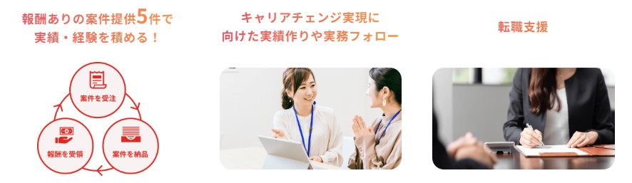 受講中に報酬ありの案件を最大5件提供してもらえる